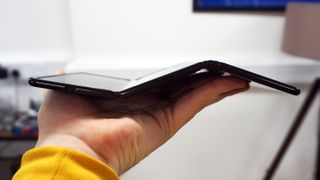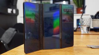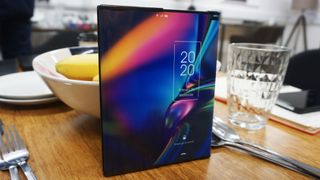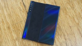 It's a design which makes a lot of sense in terms of practicality, allowing you to easily switch between the smaller and larger display sizes without have to bend, twist or fold the handset. TCL says it has a working version in its R&D facility, and on that handset the extending display mechanism is motorized, like the gear-driven pop-up selfie camera in the OnePlus 7 Pro and OnePlus 7T Pro. You likely won't physically pull out the display - instead, you'll either press a button or make a multi-finger 'swipe' gesture across the screen to trigger its expansion. Again, this is all subject to change, but it's an exciting idea TCL is building on. As there's no hinge or central 'fold' (the excess screen curves around the perimeter of the handset, inside the frame), this particular form factor shouldn't suffer from the display crease we've seen on all foldable phones to date. The working concepts TCL has of this particular form factor also boasts a 5,000mAh battery and four rear cameras, aligned vertically on the rear panel , looking a lot like the camera strip on the Huawei Mate Xs. There are some question marks over this design, however. First up, there's no word on when we may see this form factor hit the market - if ever - and then there's the question of durability. The motion of having the screen slide in and out of the body of the phone, along an extending part of the handset, doesn't feel like the most durable solution. We'd worry about the screen getting snagged as it rolled in/out, or the extending part of the handset being easily broken as it's unlikely to have the same structural integrity as a standard phone. One phone, two hinges