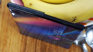 As you can see if you flip through the gallery above, this TCL foldable phone concept is unlike anything we've seen before. While the likes of the Samsung Galaxy Fold, Galaxy Z Flip, Motorola Razr and Huawei Mate XS all have a folding display on a hinge, this concept offers up something rather different. Instead of a folding display, this TCL concept phone has a pull-out, rollable screen, allowing you to significantly increase the real estate of the device, expanding from a 6.75-inch smartphone display to a 7.8-inch tablet screen. To be totally clear, the concept model we got hands on with wasn't a fully working device. The 'screen' you see in our pictures is just a piece of plastic with the wallpaper printed on it, but the mechanism to extend the screen did work - albeit in a basic way that won't reflect how the phone will feel when it's finished. Pick the model phone up and you wouldn't necessarily realize this handset had anything particularly special about it. It's only a touch thicker (9mm) than most flagship handsets these days, and at first glance you'd be forgiven for not coming back for a second look. However, a gentle tug on the right side of the handset and the device slides out, bringing the screen with it. As you pull, the screen extends, rolling out of the frame of the device as it goes - though the end design might extend automatically.